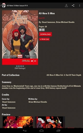 Feuilleter des bandes dessinées dans Marvel Comics est une expérience fantastique. Vous pouvez utiliser un lecteur vous permettant de tourner les pages, les visualiser en mode plein écran, en sélectionner une et zoomer sur l'écran rapidement et facilement en vous déplaçant sur la page.